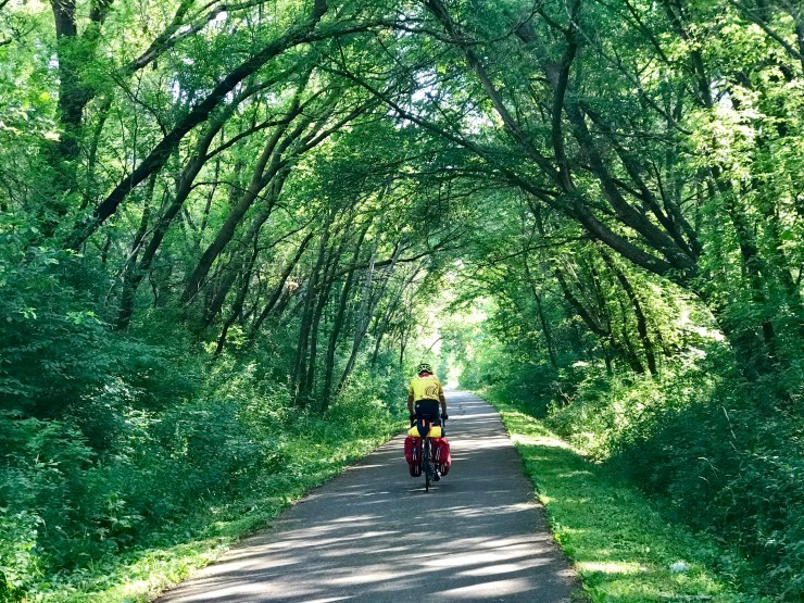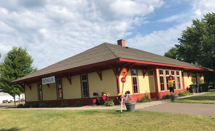 Our route across Minnesota’s narrow waist has been mostly on rail trails. Two and a half days of tree tunnels got a little boring, but we did make fast progress. My hat is off to Minnesota for buying and paving these rights of way, which are well used by bikers, walkers, and runners.