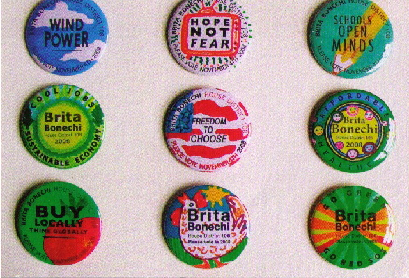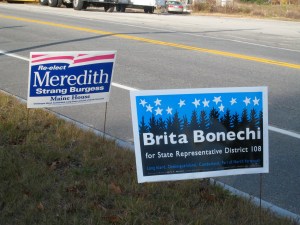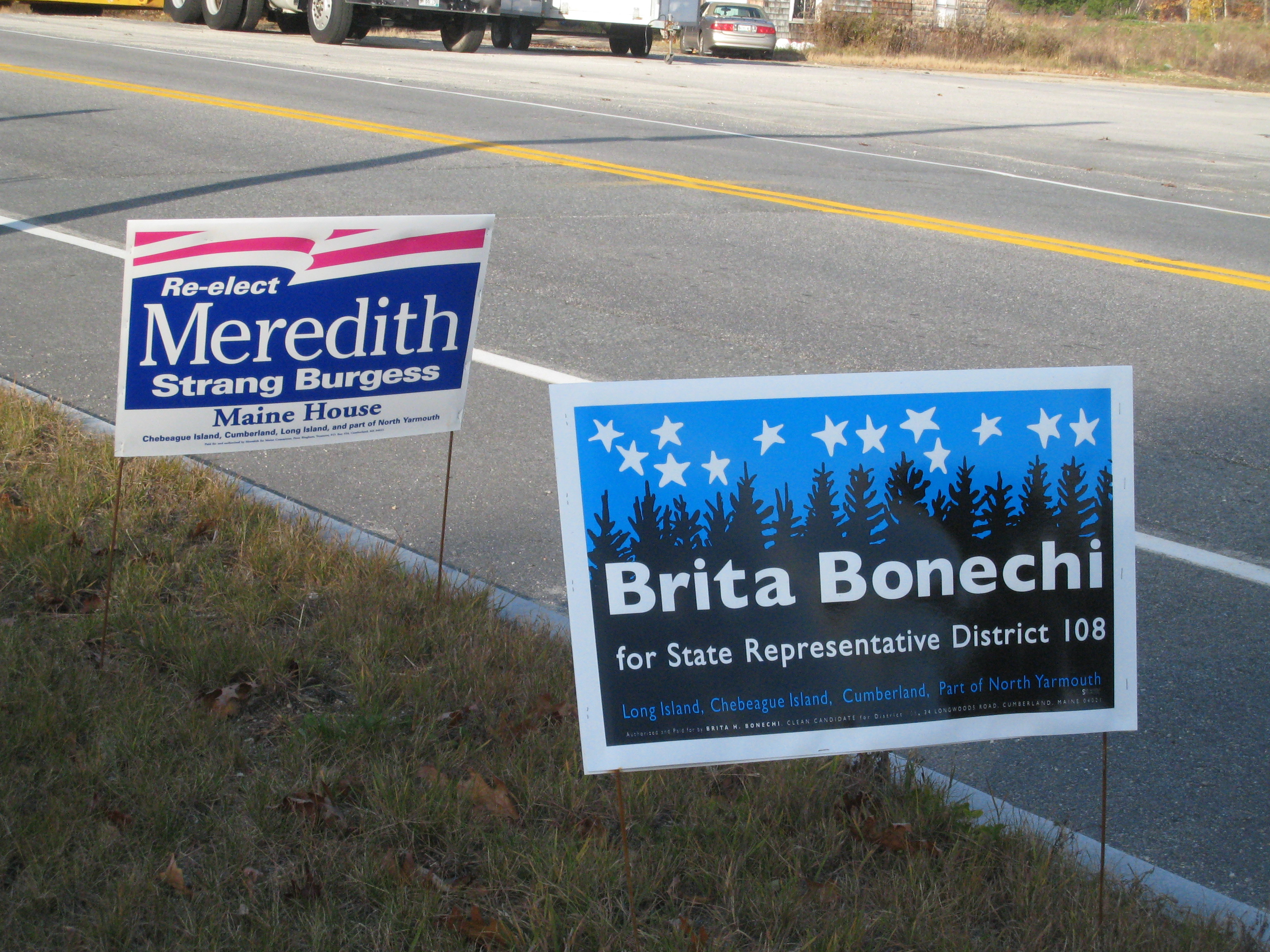 Meredith has a stalwart, patriotic sign. But I have to grant that Brita made the most beautiful campaign printings I’ve ever seen. Brita is an artist, and it shows.
